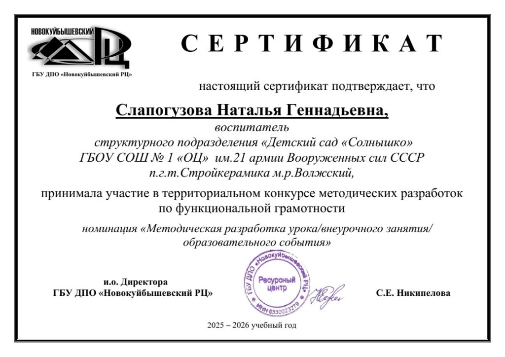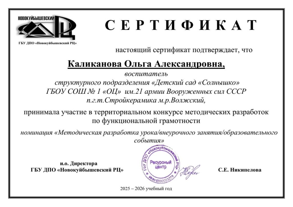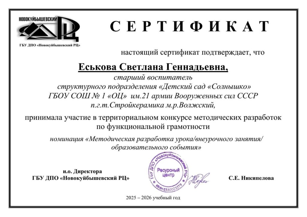 Педагоги СП «Детский сад «Солнышко» п.г.т. Стройкерамика приняли активное участие в территориальном конкурсе методических разработок по функциональной грамотности/ДОО в номинации «Методическая разработка урока/внеурочного занятия/образовательного события»